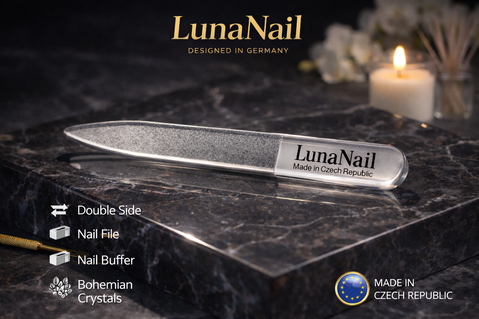 Czech Glass Nail File & Buffer 2-in-1 with Velvet Case | Dual-Sided Bohemian Crystal | Keratin-Sealing Technology | Mirror-Shine Finish for Natural Nails