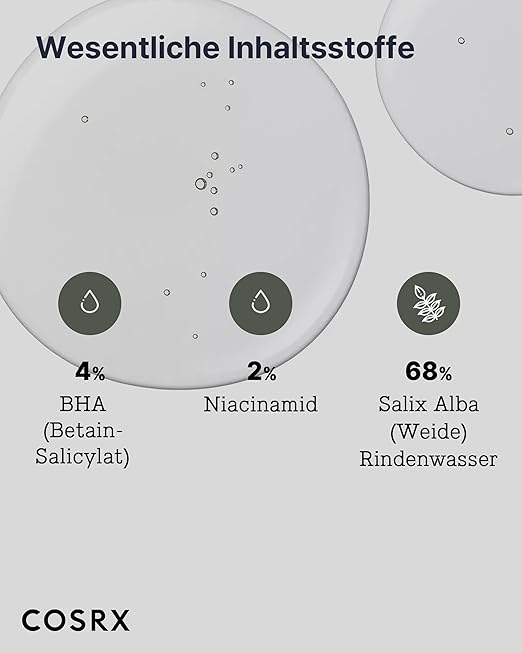 - KONZENTRIERTE BHA-FLÜSSIGKEIT: bewirkt sichtbare Minderung vergrößerter Poren und toter Hautzellen und sorgt stattdessen für natürliches Strahlen und einen gleichmäßigen Hautton.